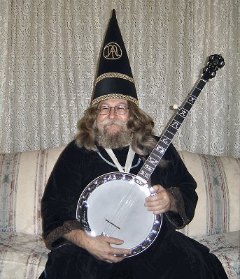 My name is Bill Palmer. I played the banjo -- 5 string, tenor and plectrum -- professionally, along with other musical instruments, for 16 years, from 1959 to 1975. In 1974, I decided to become a full time professional magician. In 1975, I began to play the part of Merlin the Magician at the Texas Renaissance Festival, a career that lasted for 26 years. During the time that I played the banjo professionally, I worked for several music stores in the Houston area, and was a Gibson technician. Back then, it was easier to become a Gibson technician than it is now. I set up hundreds of banjos for customers and for the music stores, themselves.
